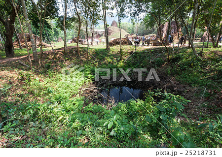 ベトナム ヒンドゥーの神々を祀るチャンパ王国の聖地のミーソン遺跡を見学する人