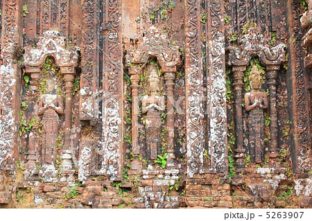 ベトナム ヒンドゥーの神々を祀るチャンパ王国の聖地のミーソン遺跡の宗教レリーフ