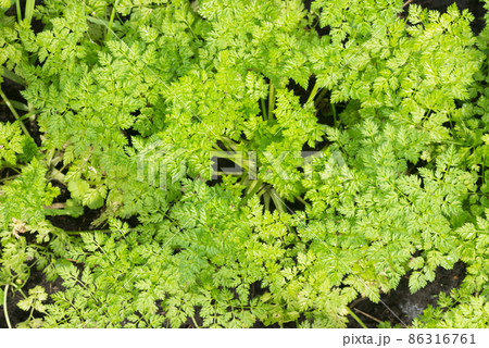畑の緑のチャービルの葉