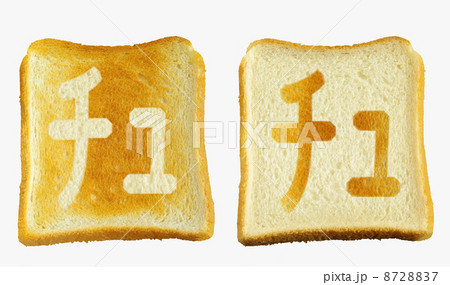 食パンに焼印風の「チュ」 カタカナ 拗音