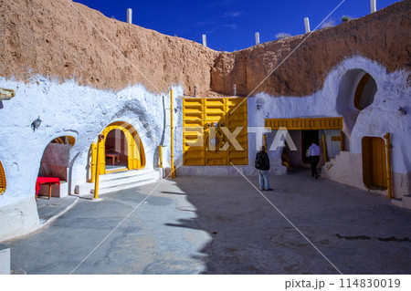 Courtyard in traditional Berber house in Sahara Desert. Matmata. Tunisia