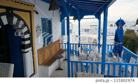 シディブサイドのカフェとチュニス湾【チュニジア】