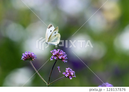 バーベラに飛ぶモンシロチョウ
