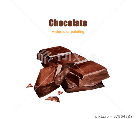 チョコレート、板チョコ、カカオの水彩イラスト Generative AI