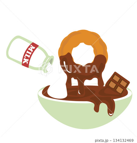 ミルクとチョコレートが入ったチョコレートソースにつけたドーナツのイラスト