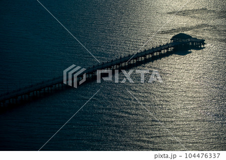 シーラチャー湾の桟橋と夕日 タイ王国チョンブリー県