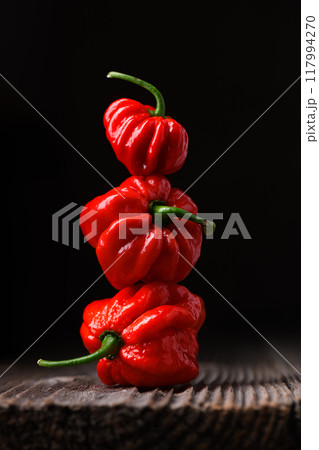 Tower from ripened red habanero peppers