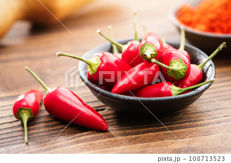 Red pepper, hot, chili pepper Capsicum annuum pungent spice. The flavor tastes sharp and burning . Vitamins organica eco .