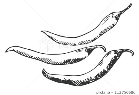 Hot peppers sketch. Chilli mexican spicy vegetable