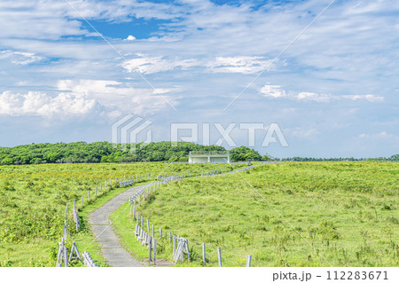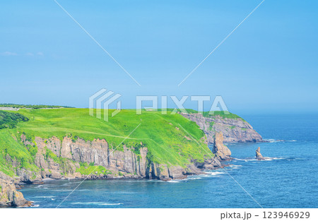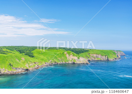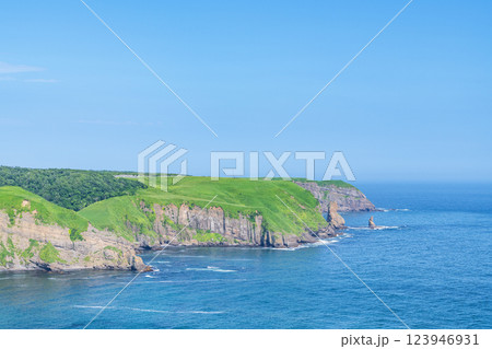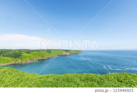 北海道厚岸町 夏の北海道 緑と青のコントラストが美しいチンベの鼻展望台