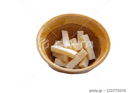 小鉢に入ったおつまみ、チーズ鱈【白背景・切り抜き】