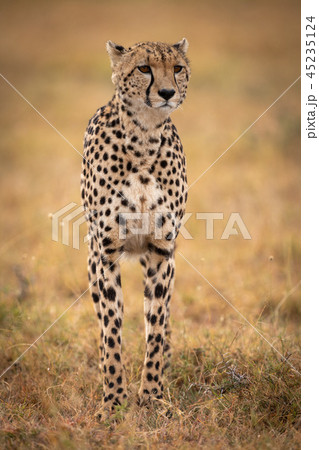Cheetah stands in grassy plain looking ahead