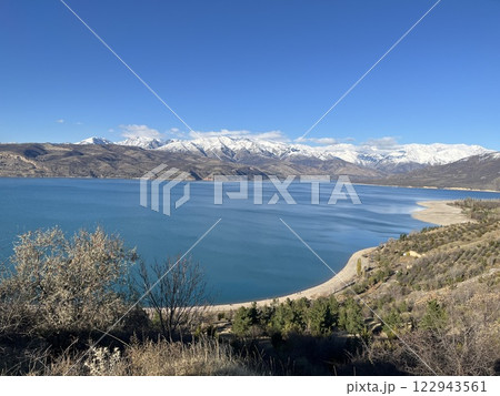 草木湖に架かる陸橋を渡るわたらせ渓谷鉄道