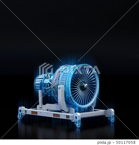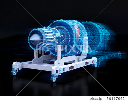 X線スタイルジェットエンジンのワイヤーフレームイメージ。デジタルツインコンセプト