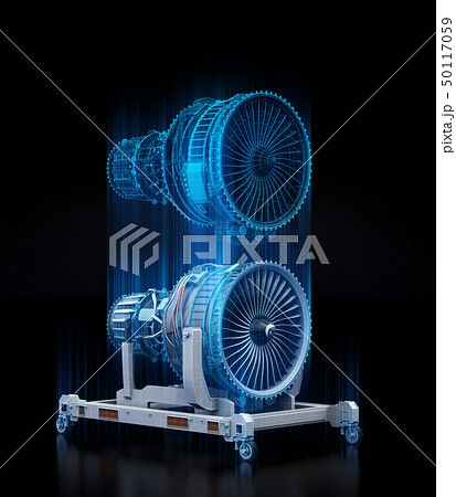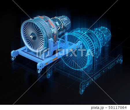 X線スタイルジェットエンジンのワイヤーフレームイメージ。デジタルツインコンセプト
