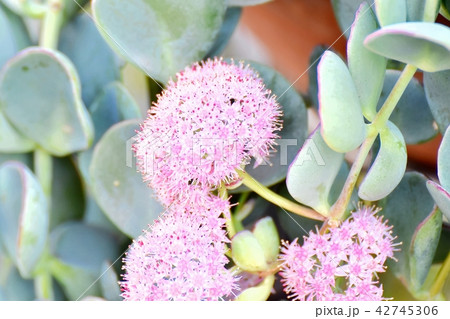 三鷹中原に咲く多肉植物ミセバヤのピンクの花