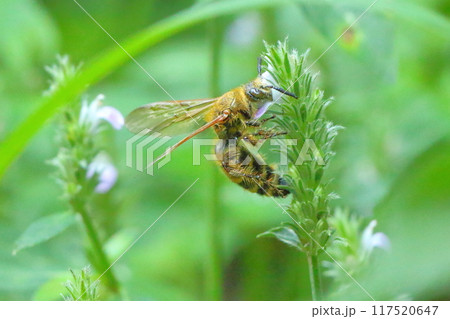 花の蜜を吸う蜂(キンケハラナガツチバチ)