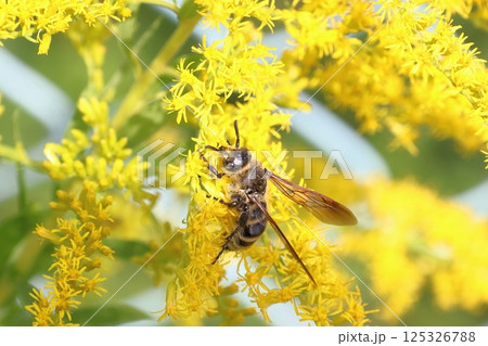 ハラナガツチバチの仲間とセイタカアワダチソウ