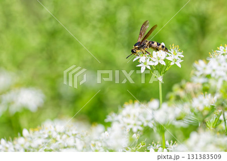 生き物 昆虫 ニッポンハナダカバチ、子供の餌はハエ類だそうですが成虫は花の蜜