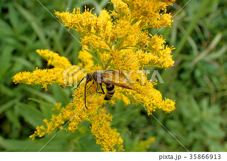 ハラナガツチバチの仲間とセイタカアワダチソウ