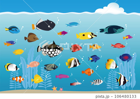 海を泳ぐカラフルな熱帯魚(トロピカルフィッシュ)のイラスト