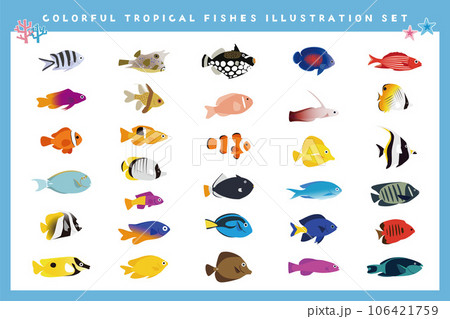 色々な熱帯魚のイラストセット トロピカルフィッシュ