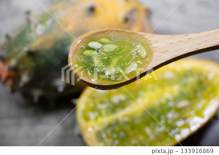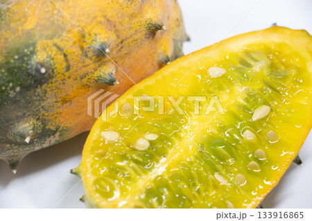 Kiwano or Horned Melon Cucumis metuliferus sliced