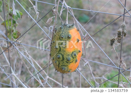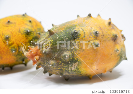 キワーノ 不気味な果物のイメージ写真 青背景