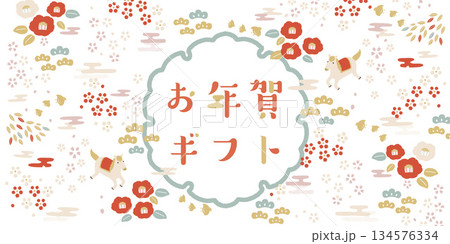 正月のイラストと和のあしらいのセット