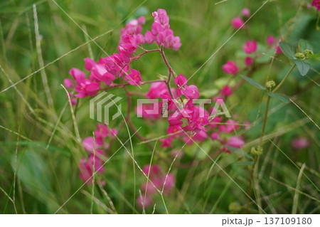 Vibrant Pink Coral Vine Flowers with a Busy Honey Bee