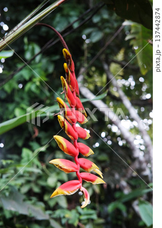 Fresh tropical Yellow and red heliconia flowers in tropical forest