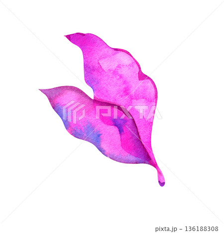 Hand painted watercolor vibrant pink leaves with purple accents. Artistic botanical illustration for modern floral designs, summer patterns, and creative branding projects.