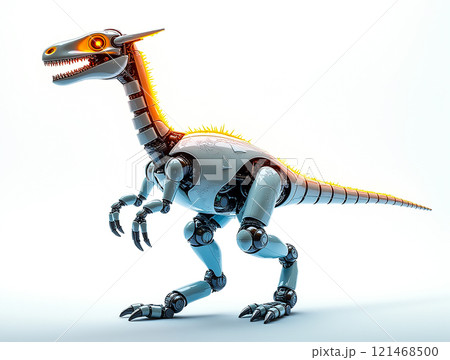 Futuristic robotic dinosaur designed with glowing elements in a sleek, modern style