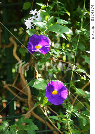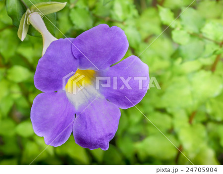 紫色の花を咲かせた植物のアップで撮影した写真 熱帯植物(9月)ツンベルギア03V3.4
