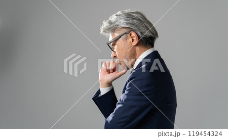 ビジネスマン グレイヘア 考える 横顔
