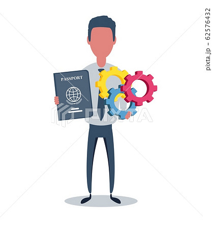 Businessman or clerk. Male character in trendy simple style with objects, flat vector illustration.