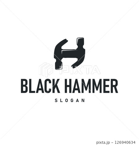 hammer logo design concept simple black silhouette hammer template illustration building equipment brand symbol product and business