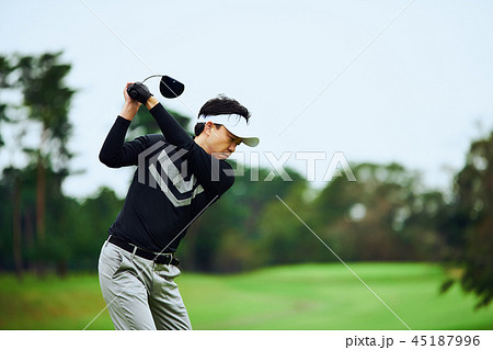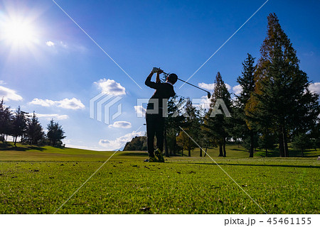 ゴルフ を プレー する 日本人 女性 ゴルファー 【 夏 秋 golf の イメージ 】