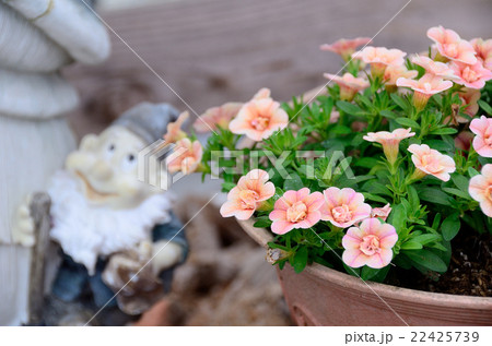 オープンガーデンの鉢植えのカリブラコア・ティフォシーとベコニアの花