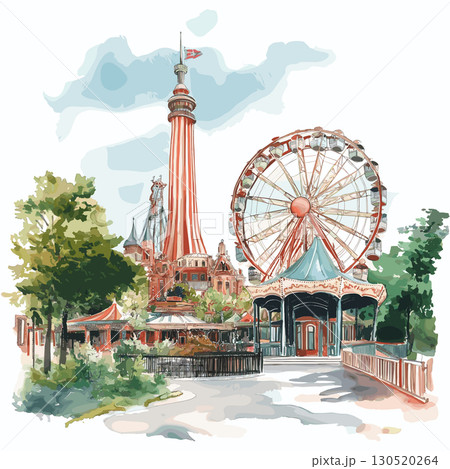 Tivoli Gardens. Tivoli Gardens watercolor vector illustration