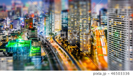 首都高速3号渋谷線 交通 車 俯瞰 ビル群 夜景 不動産 東京 ミニチュア風 チルトシフト