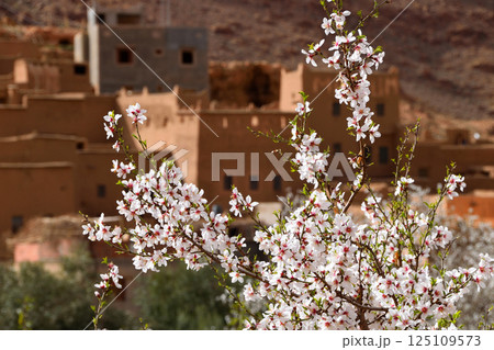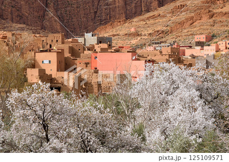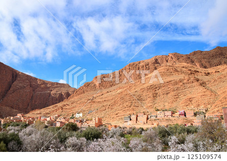 モロッコ ティネリール近郊トドラ渓谷のアーモンドの花
