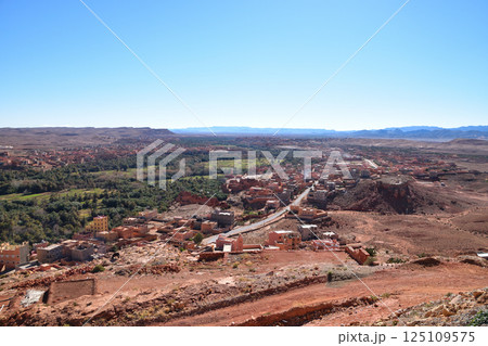 モロッコ ティネリール近郊トドラ渓谷の廃墟のカスバからの絶景