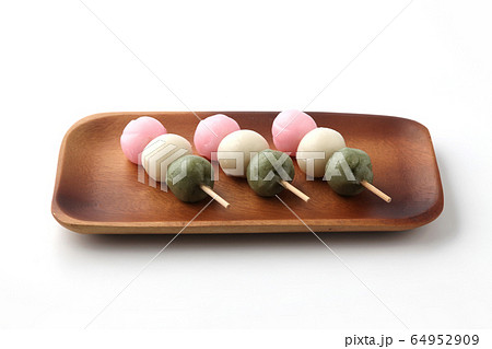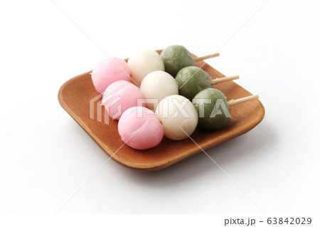 三色だんご 団子 日本のお菓子 和菓子 白背景