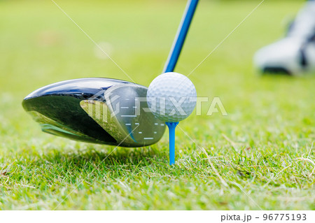 ゴルフ場のティーグラウンドでのドライバーショット