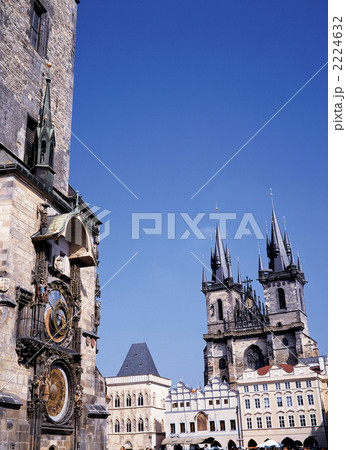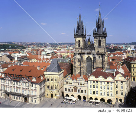 青空に映える教会 プラハ 旧市街広場 チェコ