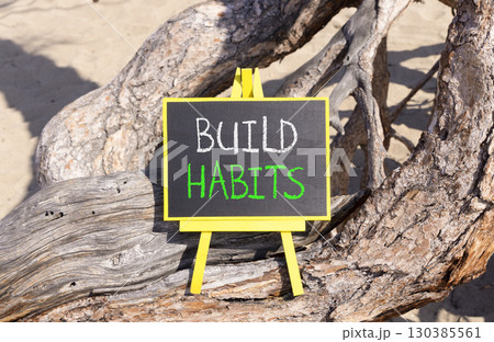 Build habits symbol. Concept word Build habits on beautiful black blackboard. Beautiful old tree background. Black blackboard. Business build habits concept. Copy space.