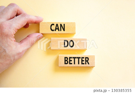 Can do better symbol. Concept words Can do better on beautiful wooden block. Businessman's hand. Beautiful white background. Business and can do better concept. Copy space.
