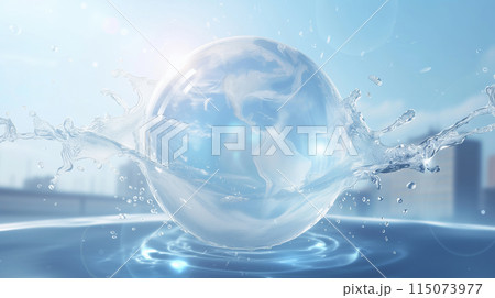 "街に浮かぶ地球がマッピングされた水のしずく."<AI生成素材>