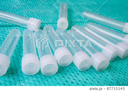 Plastic test tubes with caps for the collection of samples. Sampling tubes for laboratory examination.